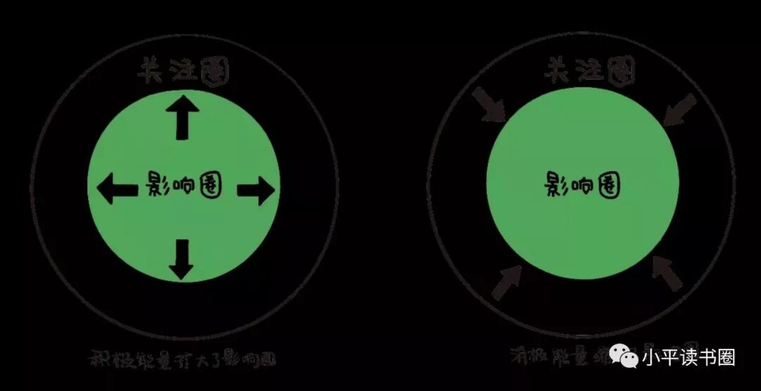 你关心健康、事业、甚至世界局势,这是“关注圈”。但关注圈中有些事,是你无法影响的,比如谁当选美国总统。关注圈中,那些你可以影响和控制的小圈,叫做“影响圈”。